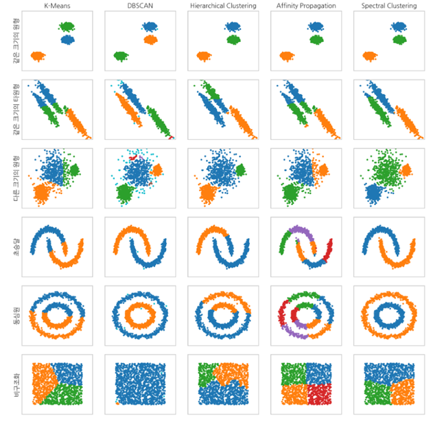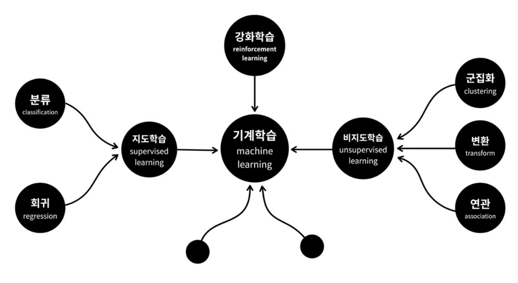 - 비지도학습 (unsupervised learning) : 군집화(clustering), 변환(transform), 연관(association)