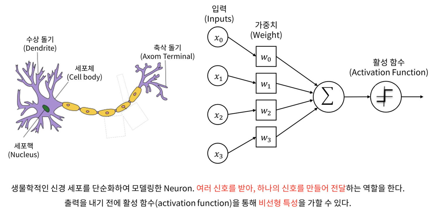 - 인간의 뇌 속 뉴런의 작용에 영감을 얻은 통계학적 학습 알고리즘