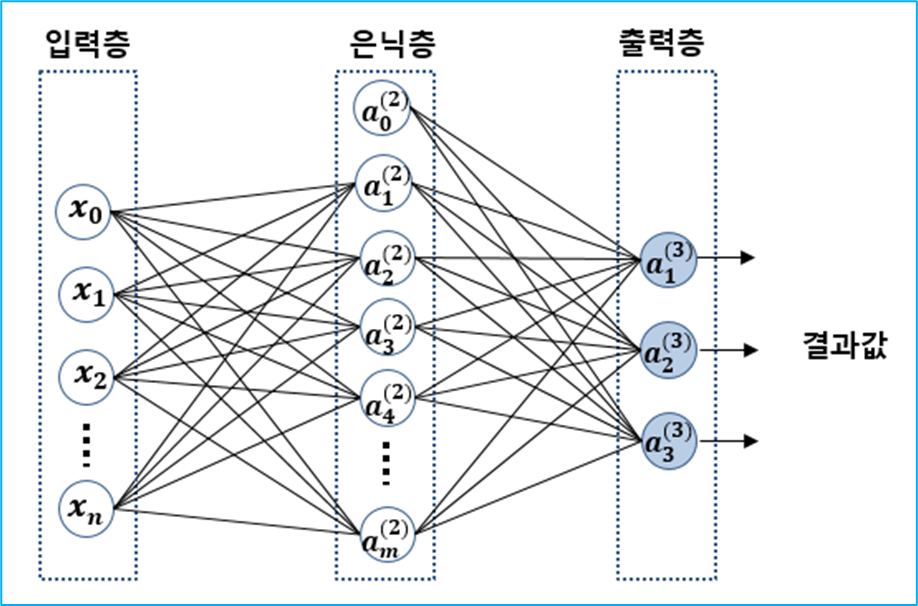 - 일반적으로 신경망에서 은닉층과 출력층이 2개 이상이 되면 심층신경망이라함