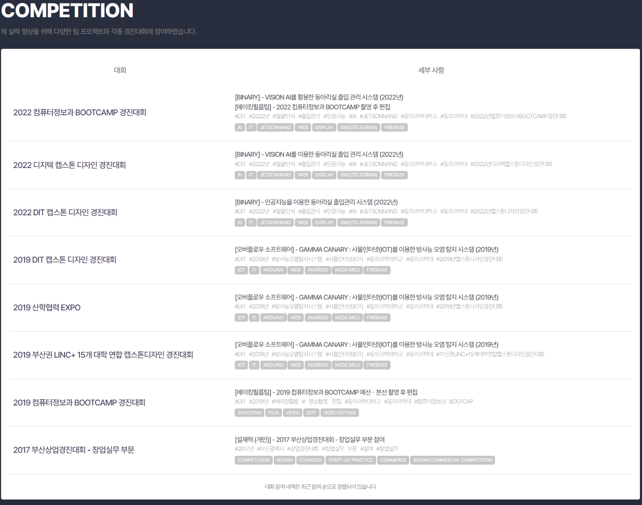 - 각종 경진대회에 참여하여 수상한 내역을 알 수 있도록 구현하였다.