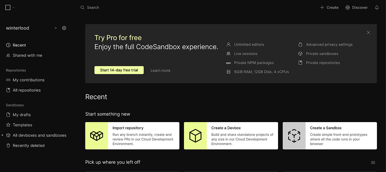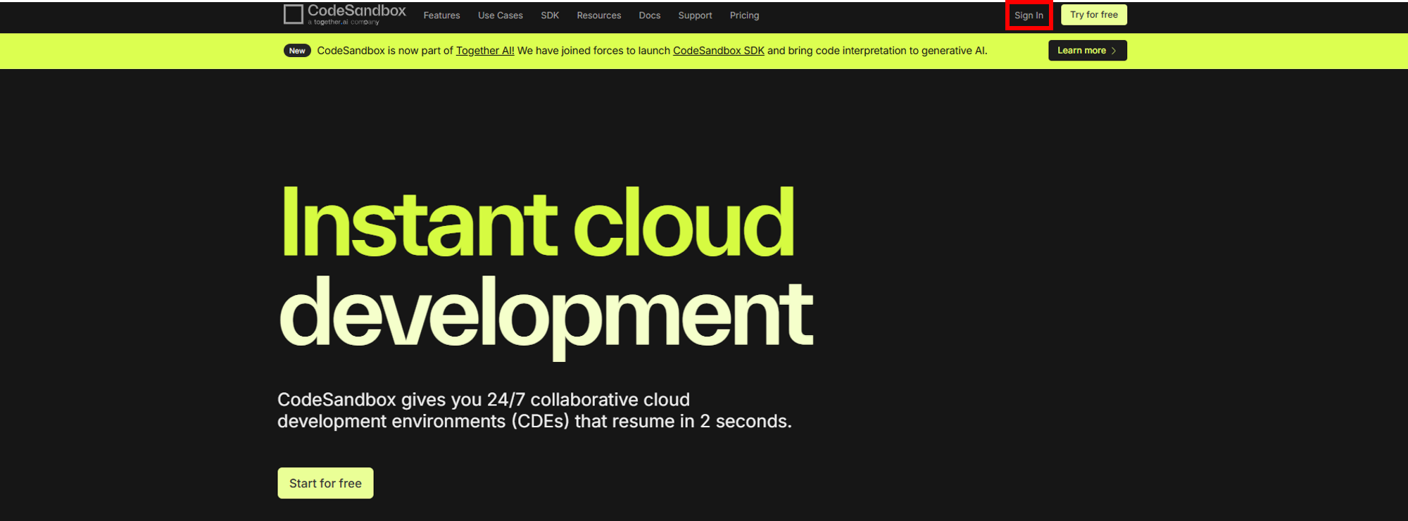 9. 이제 새로운 Sandbox를 생성하여 실습을 진행할 수 있습니다.