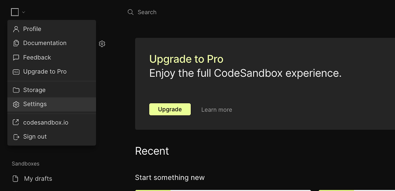 2. 코드샌드박스 사이트에 접속하면 다음과 같은 페이지가 나옵니다.