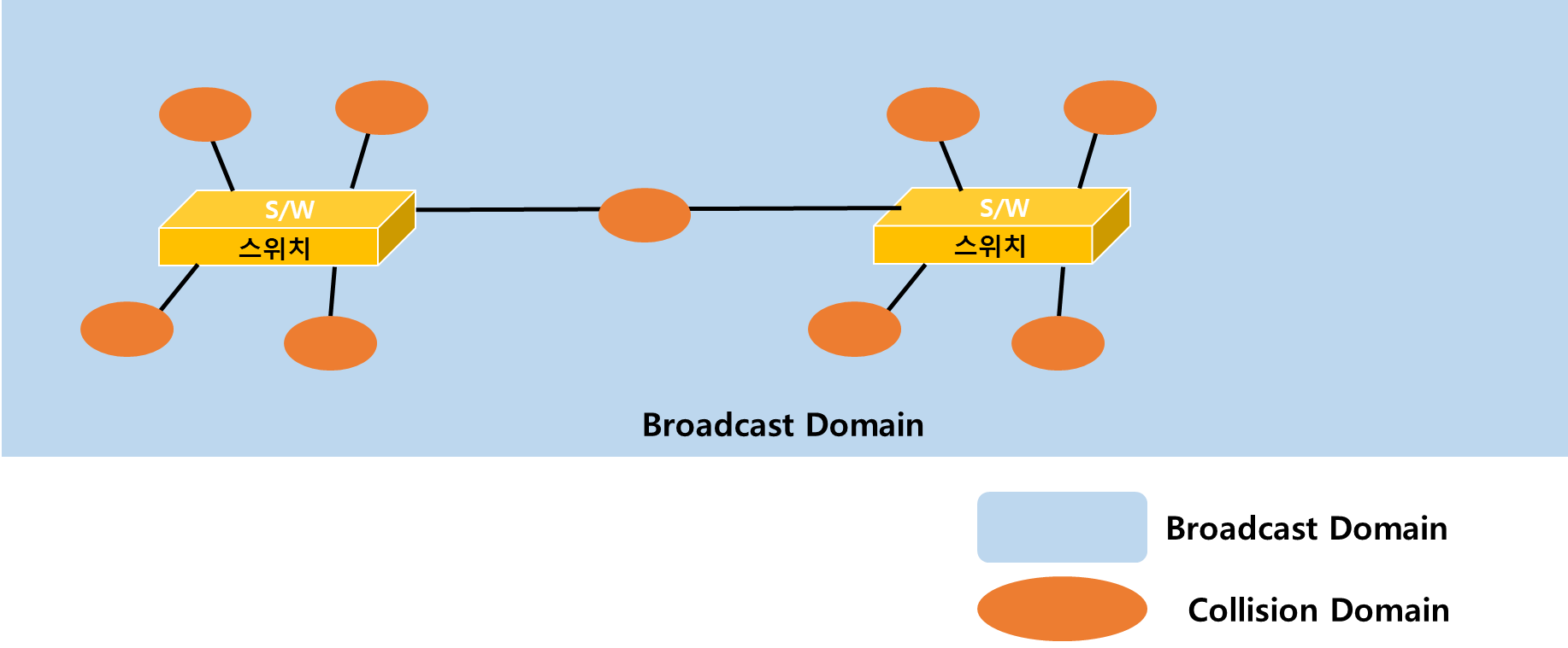 - 그림에선 콜리전 도메인이 브로드캐스트 도메인보다 작아 보이지만, 사실 같은 크기라고 이해하면 된다.