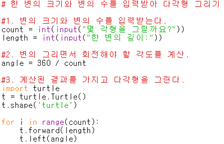 Q1. 한 변의 크기와 변의 수를 입력받아 다각형을 그려보자.